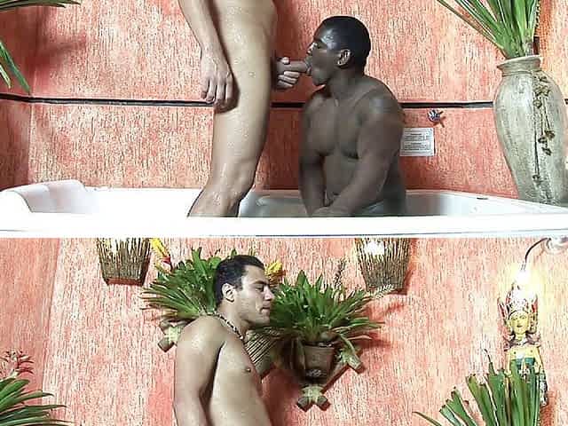 Two White dudes get fucked rough by a muscled Black guy