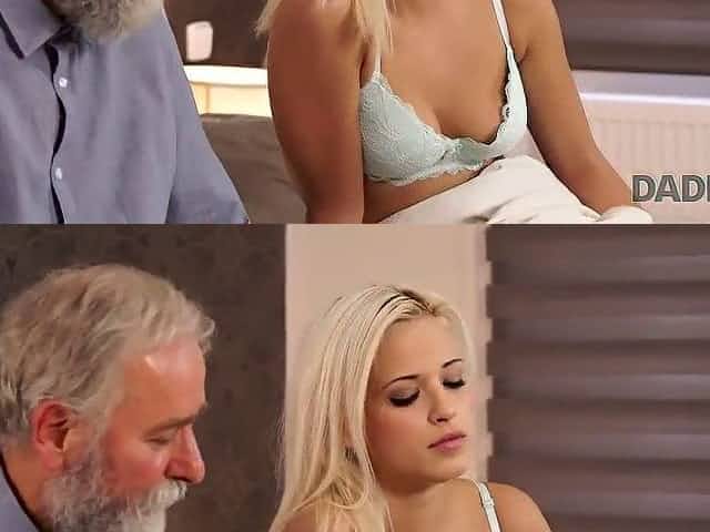 Perfect blonde girl with her pussy fucked by old man