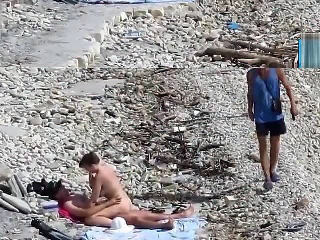 Voyeur tapes a couple having sex on a nude beach