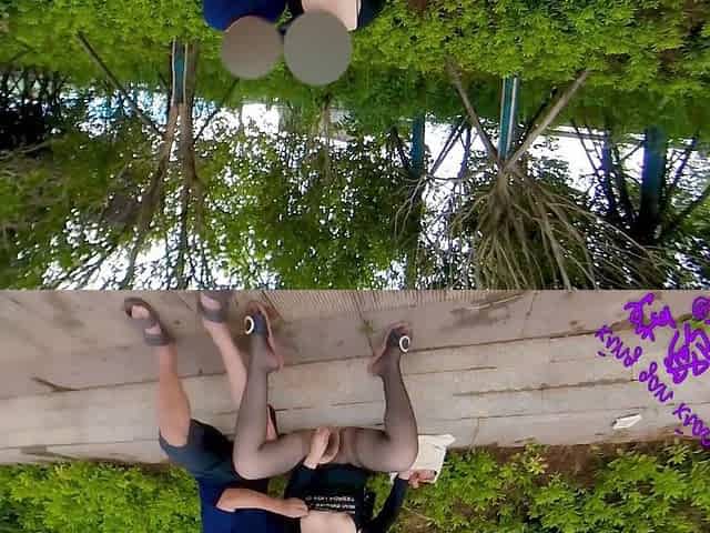 An outdoor photo session with the sexy Asian ends in a threesome with DP and anal
