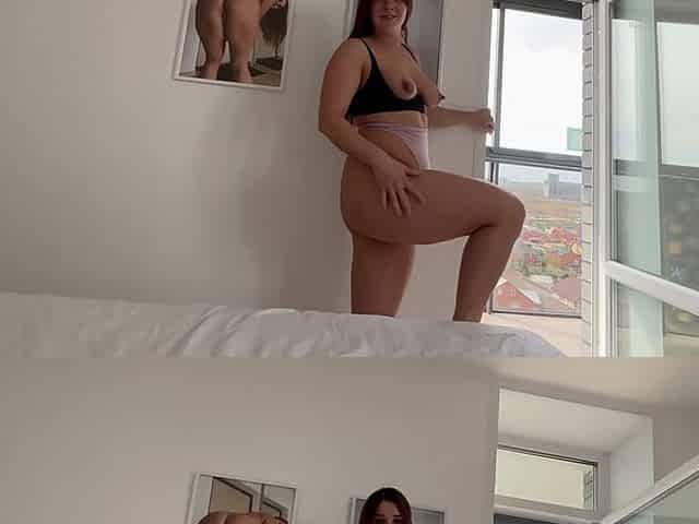 Hot horny stepmom Angel catches young dude taking pictures of her ass
