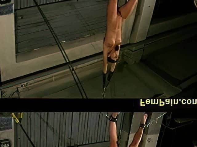 Alexa is chained and tied upside down