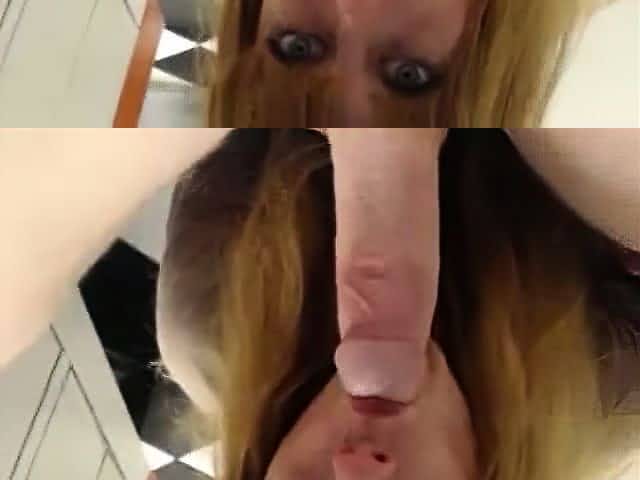 Cum drips on her face in a pawn shop after stealing items