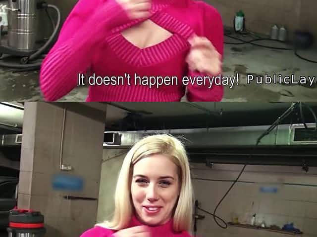Blonde teen with small tits fucks for money in a shop