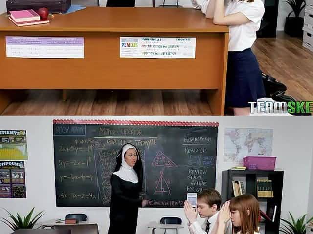 Brunette college girl fucked in detention by horny teacher