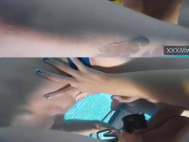 German skinny amateur milf fuck underwater in pool POV