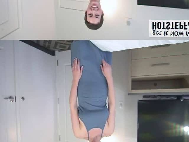 Sexy Mama with very Large Breasts Asks Stepson for aid with Yoga Exercise