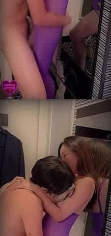 Horny blonde licks slutty babe's wet cunt while she is on the phone