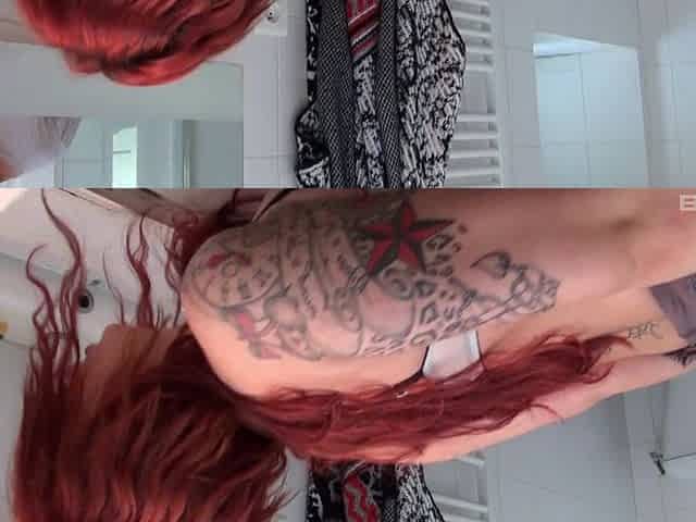 Tattooed redhead wife Misti Dawn spreads her legs to be fucked