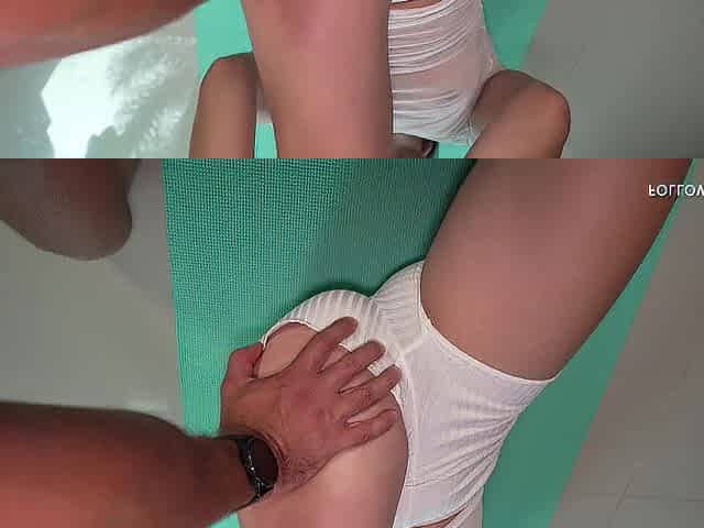 My stepbrother helped me with yoga and then banged my throat and my taut twat hard