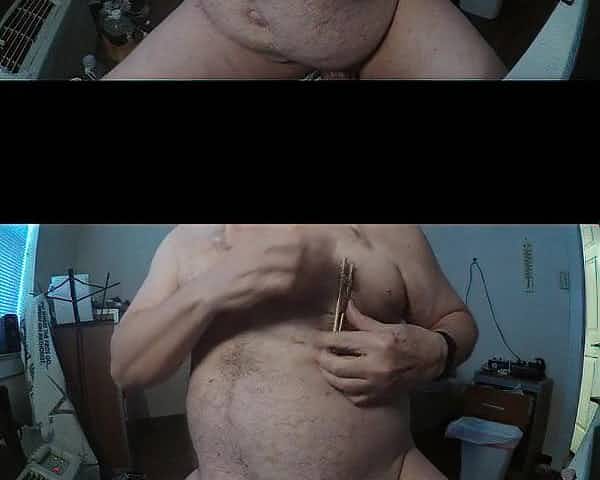 Chubby guy fucking his arsehole with a toothbrush