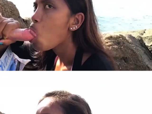 Outdoor blowjob and quickie fuck with a lusty Thai GF