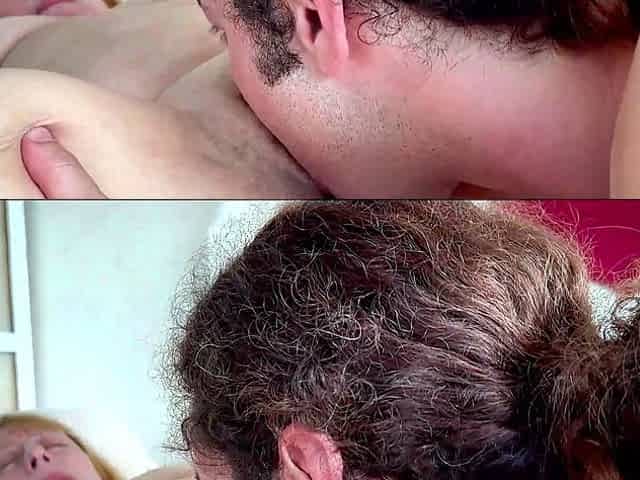 Wicked old slut is teasing young beaver-cleaver with her mouth