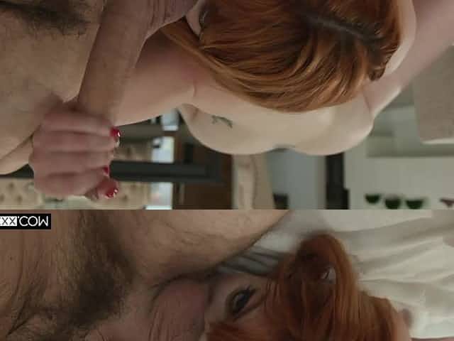 Red head curly hair slutty wife with big tit gets double penetrated