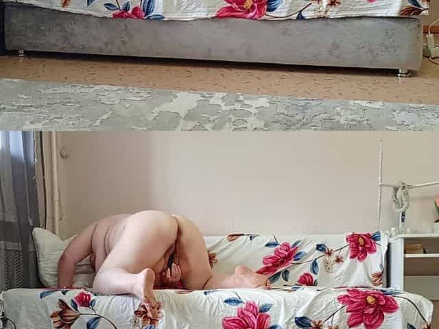 Mother-in-law Stripped Naked and Masturbates Her Holes with a Sex Toy in Front of the Camera