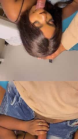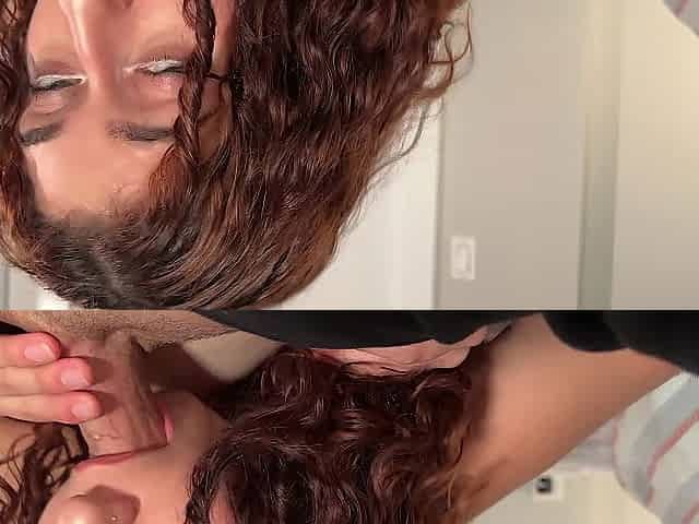 A hot slut with big tits does a deep throat blowjob while a guy moans