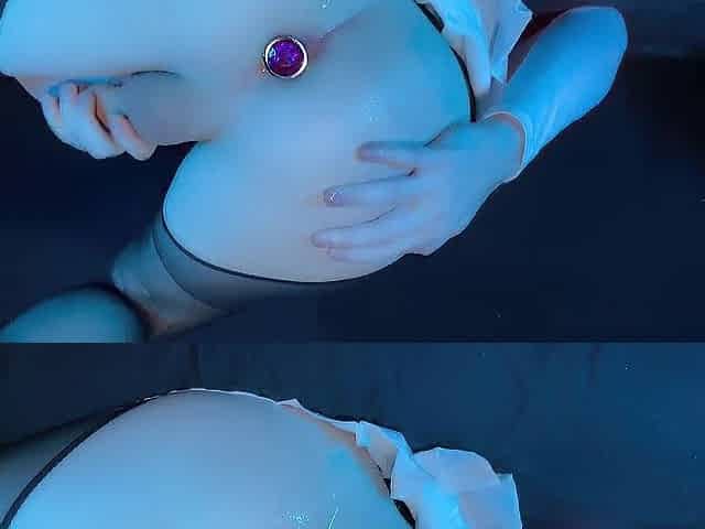 Hawt teen crossdresser in underware solo anal play with vibrator
