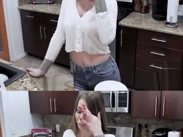 Big tits cougar Dee Williams fucks with her step son in the kitchen