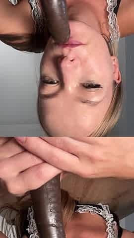 Step sister at home in maid costume trains throat with bbc