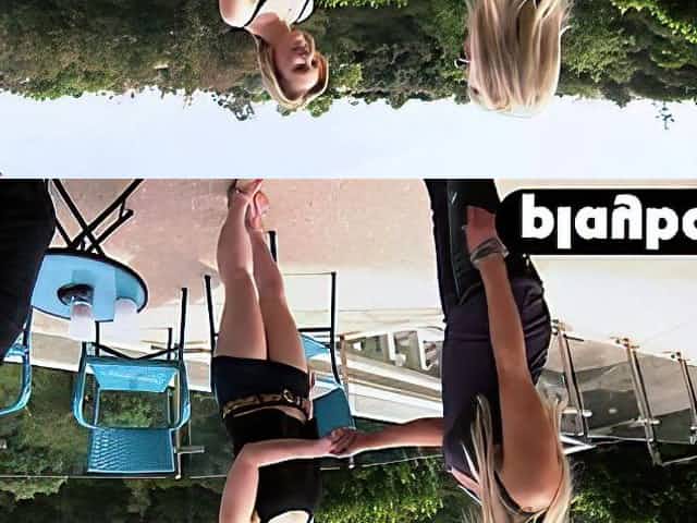sharing blonde girl with a friend