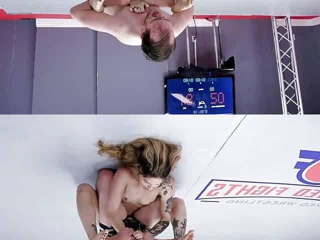 Arielle Aquinas and Chad Diamond in a steamy mixed wrestling match with rough throat fucking