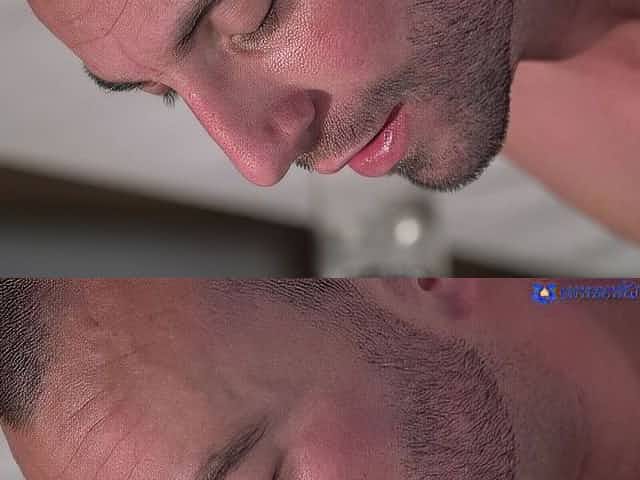 HJ CFNM brunette teases and wanks her man to his orgasm