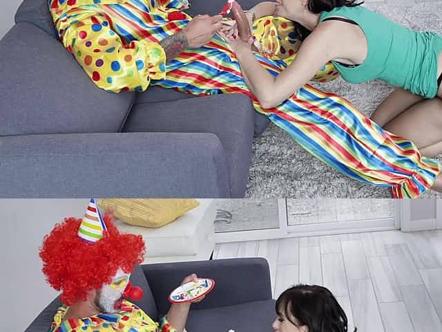 Kinky clown whips out his big schlong for sexy Alana Cruise to blow