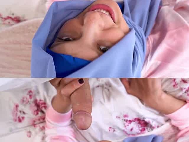 Sexy babe in hijab massaged big dick