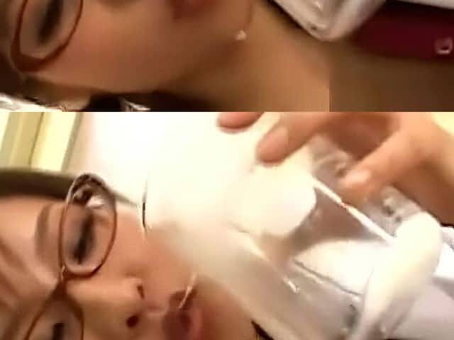 Sexy japanese doctor gets a double cumshot