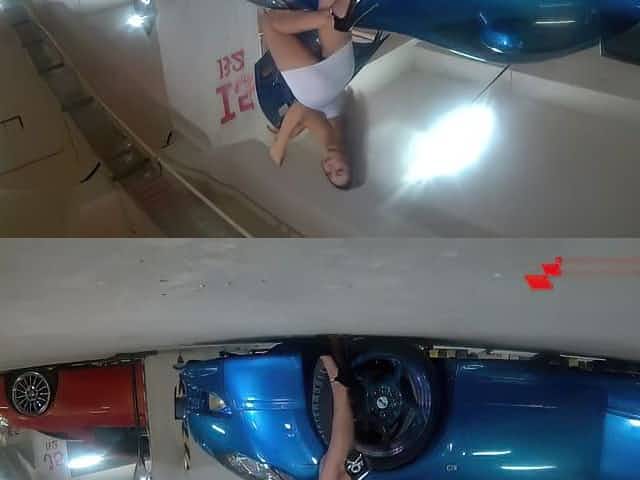 Lesbian fucked mature milf in the car. Big tits and fat ass in sexy underwear. POV.