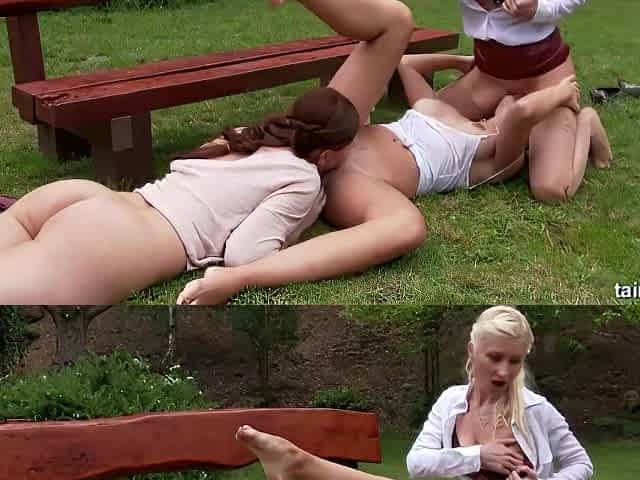Erotic lesbian vide in outdoors with sexy Angelica Black and Lucy Bell