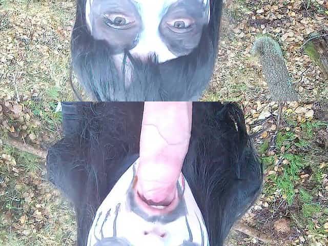 Cheerful Halloween. Floozy witch caught up with me in the forest and sucked my shlong