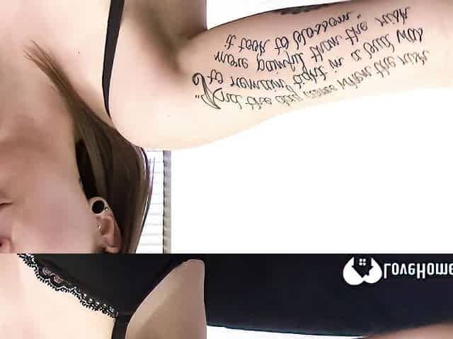 Sexy skinny girl gets her pierced hole drilled by couch