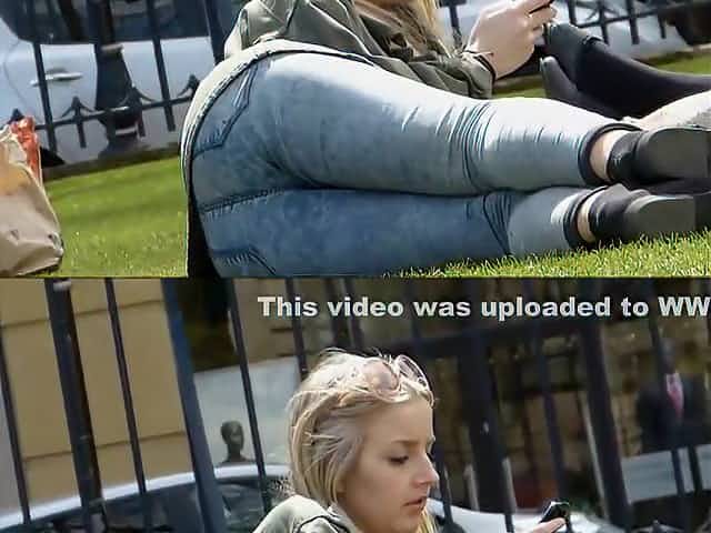 Sexy college girl in tight jeans