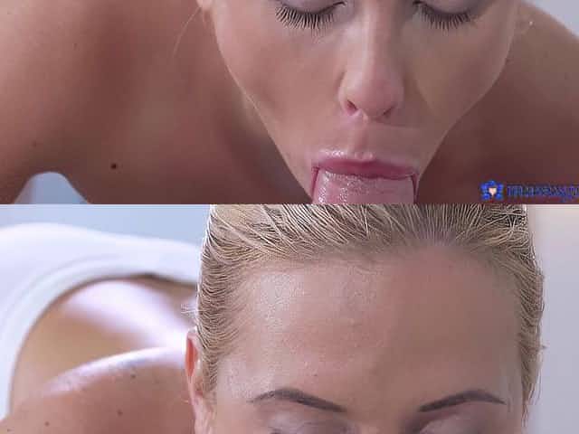 Blonde masseuse rides big cock