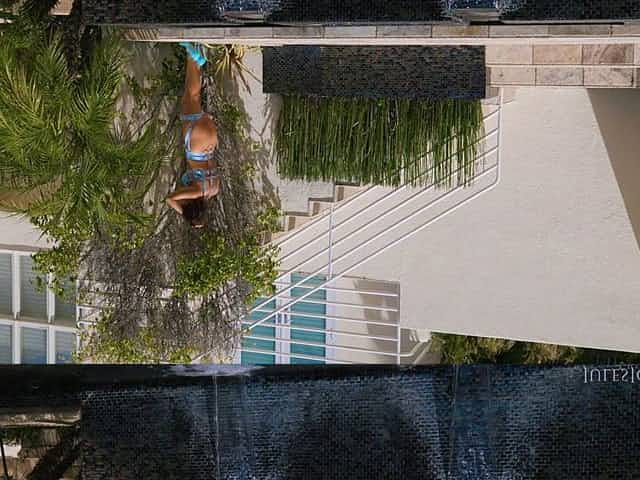 Smokin' sexy, Latin brunette hair is having a male+male+female three-some with neighbors, in the late afternoon