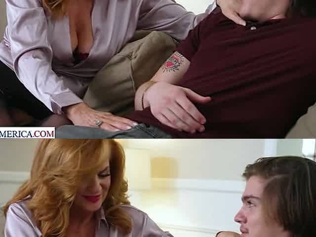 Sexy Blonde Cherie DeVille fucks and sucks her boyfriend's son's hard cock
