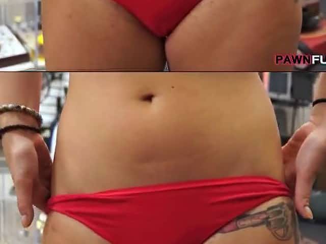 naked girl with big boobs and ass shows sexy belly piercing