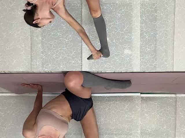 Flexible 18yo schoolgirl blond doing nude workout