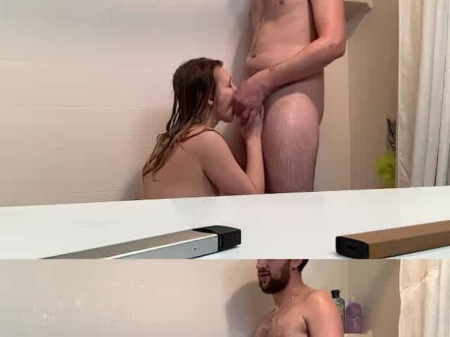 Sexy blonde with big tits gets fucked hard in shower and swallows all his cum