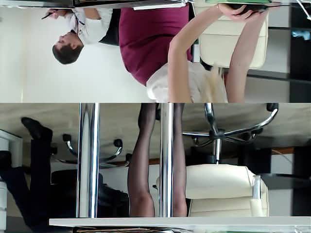 Secretary in sexy stocking teasing alone