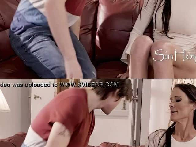 Lucky Guy Cums On His Busty Step-mom And Sexy Slim Brunette Step-sis After a Hot Threesome