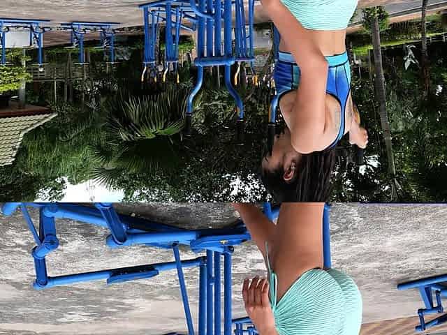 Outdoor gym workout with sexy Thai MILF