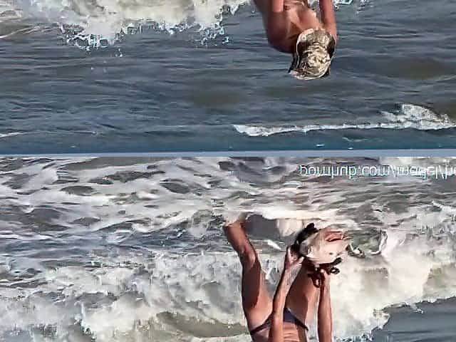 Sexy blonde lass Topless Beach Voyeur Public Nude