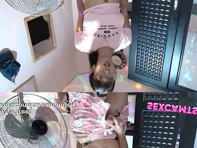 Two sexy asian shemale couple suck and fuck each other on live free webcam show