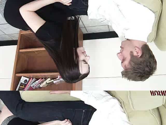 Couple invite sexy student he suck her feet and his wife her pussy