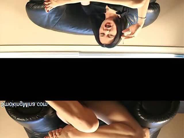 Sexy Mina smoking her cigar on the couch