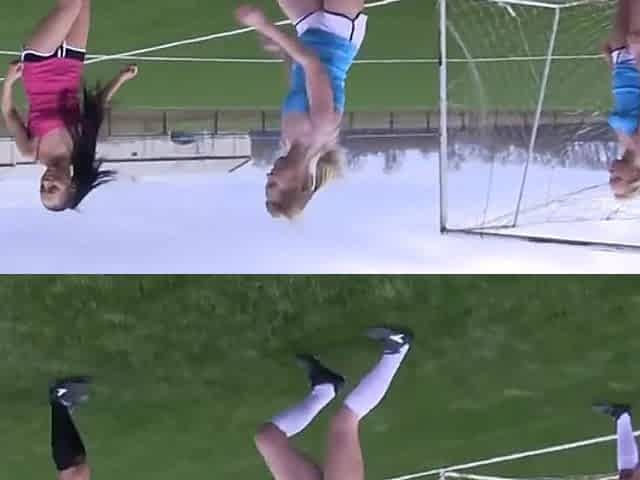 Skinny girls share nudity during a public football game