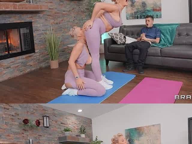 Teen Alina Li and mature Alyssa Lynn share a hard man meat
