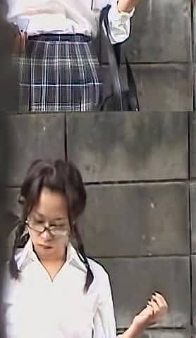 Asian schoolgirl on a break got skirt sharked while texting